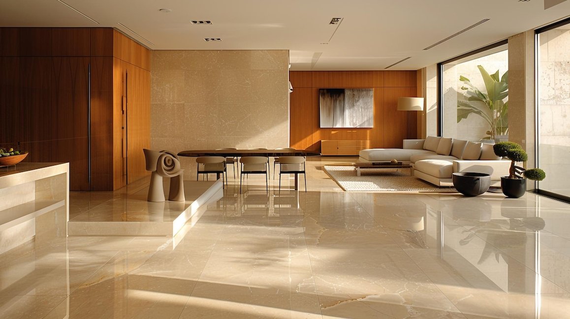Funcionalidade e estilo com pisos fáceis de limpar e resistentes à umidade.